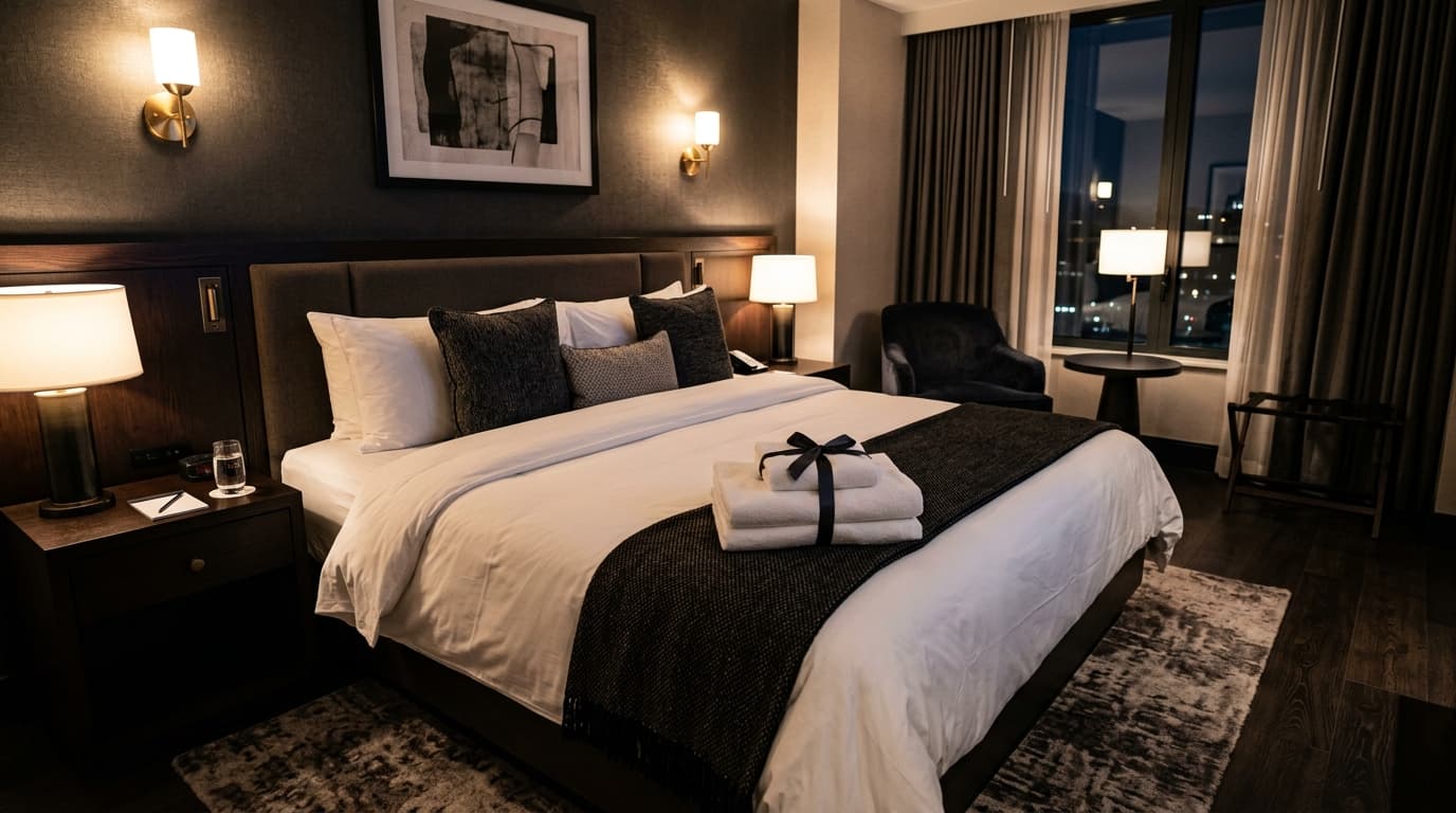 Sänglinne, handdukar och badrockar i hotellstandard – alltid fräscha och välvårdade.